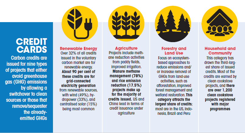 - People and businesses that wish to offset the emissions generated by their activities can buy these credits and ‘neutralise’ the carbon footprint.