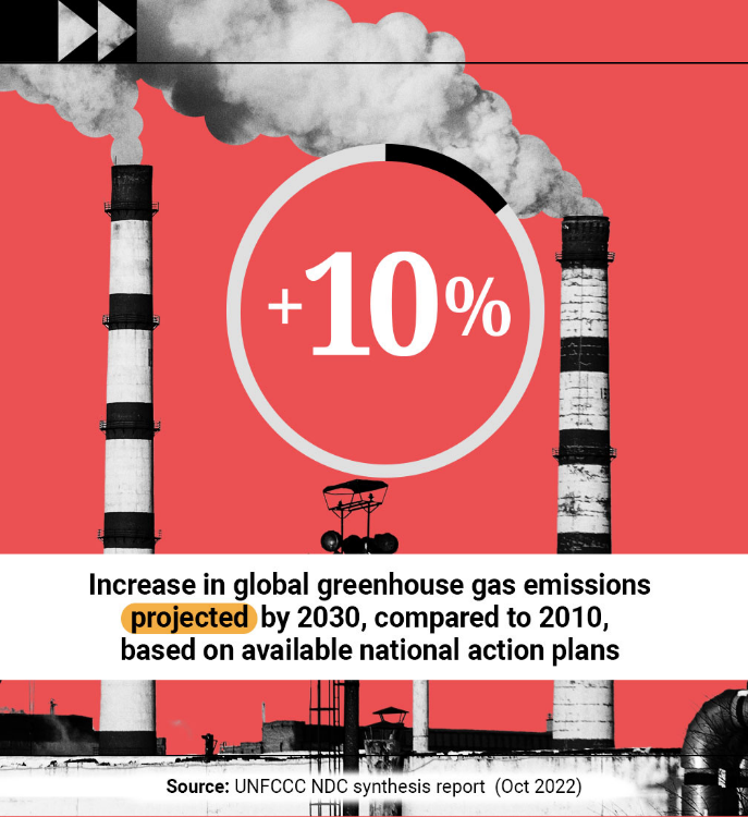 - The Glasgow Climate Pact called on all countries to revisit and strengthen the 2030 targets in their NDCs by the end of 2022, but only 24 new or updated climate plans were submitted by September 2022.