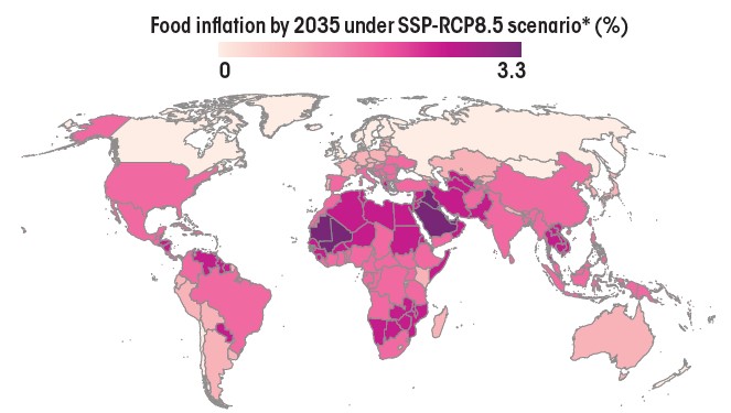 ● Rising global temperatures and frequent heat waves are already driving up food prices globally.