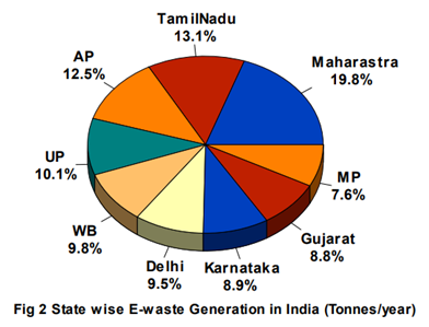 - According to CPCB the generation of e-waste is higher than 3% every year.