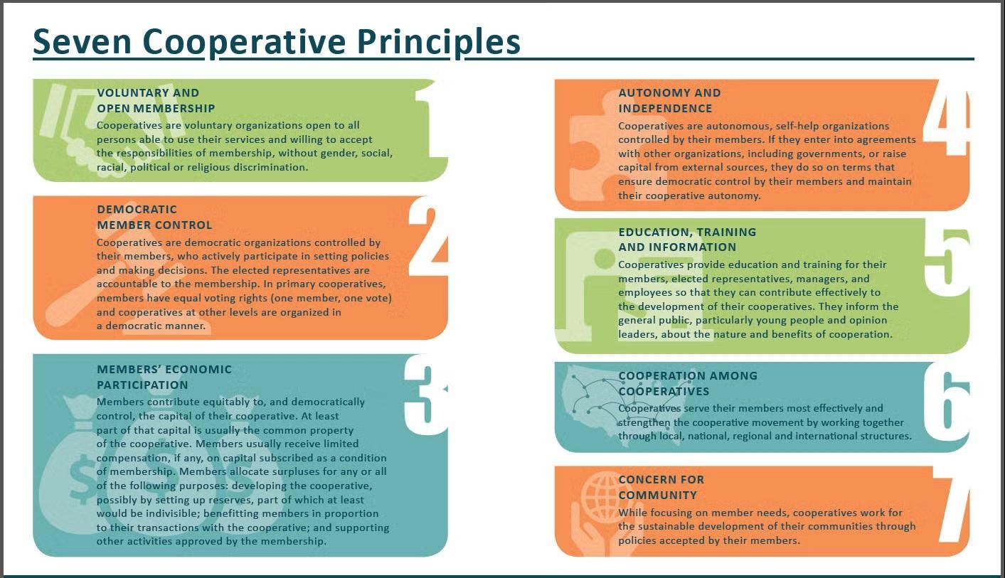 Indian cooperatives function on 7 global principles—voluntary membership, democratic control, economic participation, autonomy, education, inter-cooperation, and community focus. These foster people-centric development.