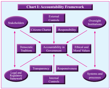 - It has an answerability component to justify the action and an enforcement component that is to take action in cases where act of omission or commission is established. It provides for remedial measures including punishment in case of deviations from norms.