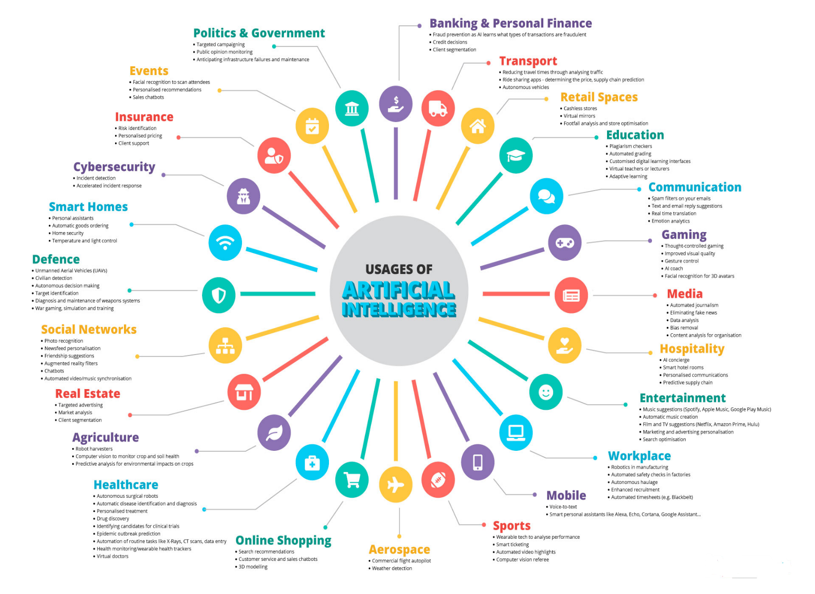 - Al technologies, including facial recognition and video analytics, are employed for public safety and security.