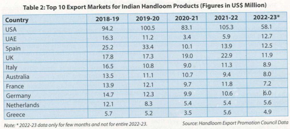 - Key Export Markets: Indian handloom products have significant demand in over 20 countries worldwide, particularly in developed countries and the Middle East.