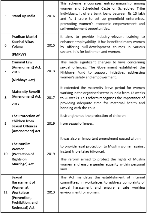 - With a dedicated focus on empowering women as equal stakeholders, addressing domestic and professional abuse, ensuring their security, and fostering their impact in the twenty-first century, the current government has taken significant strides in this direction.